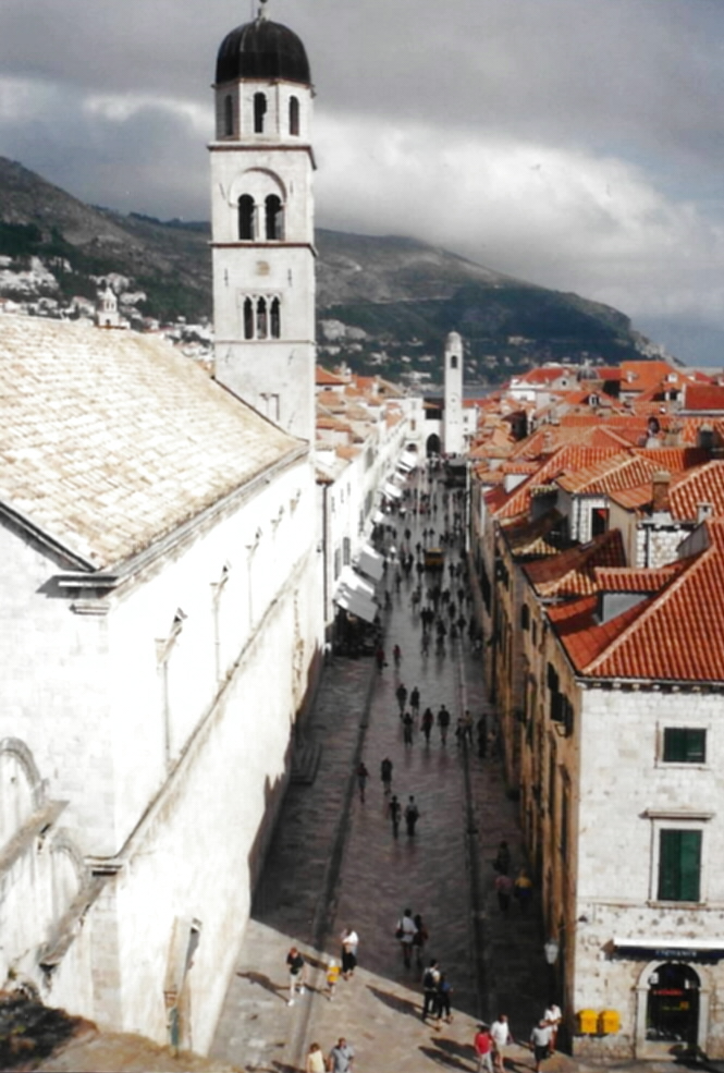Bláhově jsem si myslel, že v pondělí, tedy dnes, bude ve městě méně lidí. Opak je však pravdou. To, co člověk nevidí na celém Jadranu, vidí zde. Japonci, Angličané, Francouzi, Holanďané, Němci a pochopitelně Češi. Davy a davy lidí. Řídíme se jakýmsi průvodcem ještě z dob staré Jugoslavie. Zde se ale vůbec nic nezměnilo, vše je takové, jaké to tu bývalo před staletími po velkém zemětřesení v 17.stol., kdy dostal Dubrovník dnešní tvář. Jen fasáda jedné kaple, poznamenaná střelami z kulometu, vypovídá o tom, že tudy nedávno prošla válka.