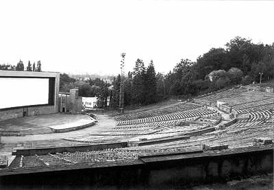 Velký amfiteátr kina pomalu utichá a hloučky lidí se vracejí zpět do města. Utichá i park. Zůstaly jen prázdné lavičky a ševel stromů a tlupa študáků, kteří na podiu kina utvořili kolo a zpívají lidovky.