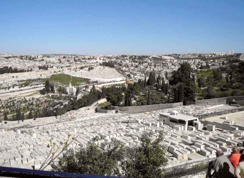 Kluk dostal jeden dolar a já malou olivovou větvičku. Oba jsme byli spokojeni. Náš nejkrásnější suvenýr ze Svaté země. Symbol míru a také naděje pro tuto zem. Není vůbec jednoduché se dostat až na okraj vyhlídky k zábradlí. Každý si chce vychutnat ten neopakovatelný pohled. Někteří ho vidí poprvé a jsou ohromeni tím panoramatem. Někteří se zde loučí s městem s notnou dávkou nostalgie. A vrývají si ten pohled do paměti. Olivetská hora je v prvé řadě spojená s působením Ježíše Krista. Tudy chodíval, když navštěvoval své přátele Martu a Marii, Lazara a malomocného Šimona v Bethany. Tady strávil i svou poslední noc před zatčením. Tady se ve své slabé chvíli, zoufalý, obracel k Bohu, aby ho zbavil krutého břemene. Tady Ježíš učil své učedníky modlitbám a zde také plakal nad osudem Jeruzaléma. A tady Bůh začal i svou práci.